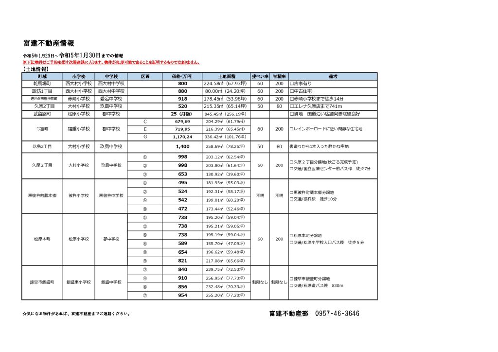 令和5年1月30日までに不動産情報を更新致しました。