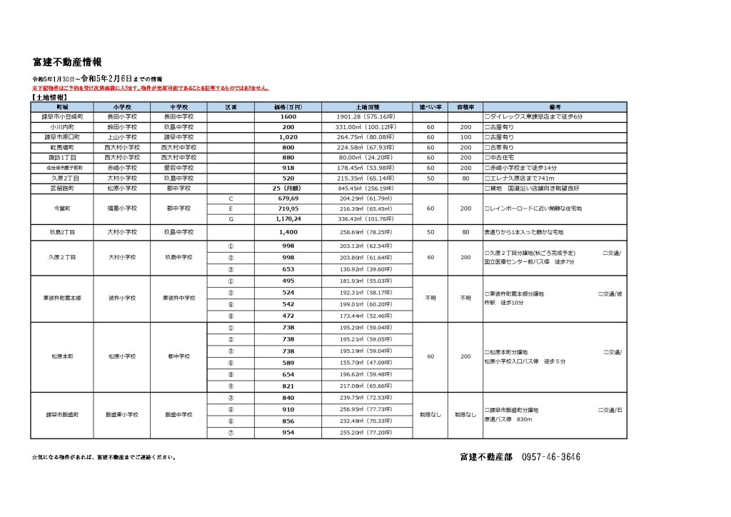 令和5年2月6日までの不動産情報